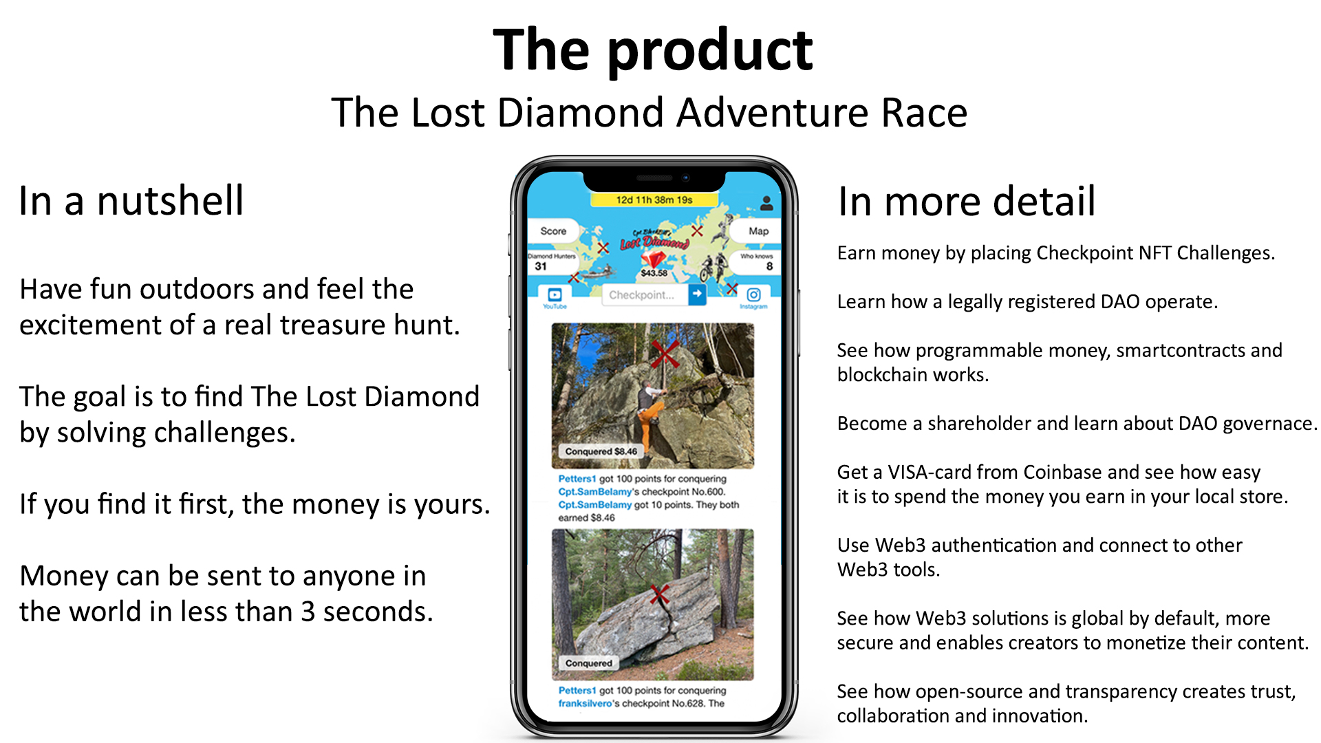 The Lost Diamond Foundation. Let anyone apply for funding to produce Checkpoint NFT Challenges. Especially related to UN Sustainable goals 1.4, 8.3, 8.5. |